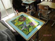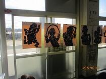 一つの学級では、窓際に一部の作品が掲示されていました。ちょうど夕日が当たって、作品が動き出しそうでした。教室が小さな素敵な美術館のようになっていました。