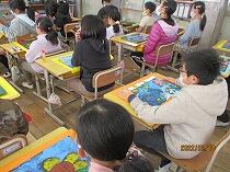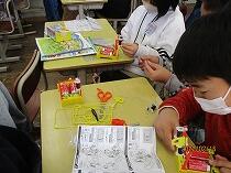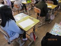 4年生の一つの学級が新しい図工の単元「カードで伝える気持ち」に取り組み始めました。今日は、1時間目ということで、教材のセットをもらい、先生と一緒に、作ったカードを誰に出すのか話し合っていました。その後、どんなカードにするのか下書きをしていました。