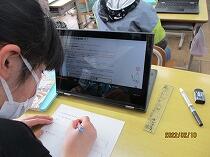 4年生の別な学級では、総合的な学習の時間「未来をみつめて」の学習に取り組んでいました。タブレットを使って、将来のなりたい職業について、真剣に調べていました。ただ、調べるだけでなくカードに記録をしっかりして、それをファイルにしっかりと綴じています。