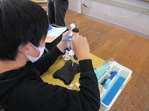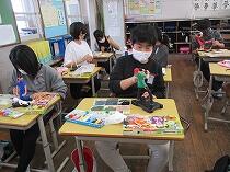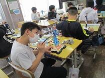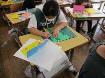 カッターを使うのにも慣れてきたのか、スムーズに作業が進んでいているように見えました。写真にあるように、教室に入ると、みんな集中していて、よい作品にしようという思いが伝わってきます。完成目指してがんばれ!