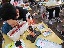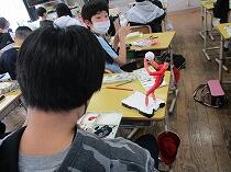 6年生は、今、図工で「未来の私」ということで、紙粘土を使った作品づくりに取り組んでいます。この学級では、骨組みに紙粘土を貼り付けたり、早い子どもは絵の具で着色を始めていました。