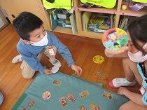 「めんこ」がめくれると大騒ぎをして喜んでいました。何枚、自分が獲得できた競争をしていました。学校の「めんこ」は、昔懐かしいものですが、かなり使いこなされてきた感じになっているものもありました。そこで、自分たちで作った「めんこ」を使う子どももいました。みんなで遊ぶ楽しさややり方をいろいろ工夫する楽しさを満喫していました。