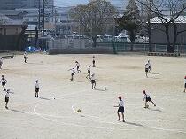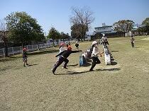 今朝は曇っていましたが、2時間目にはもう晴れていて気温も高く、運動にはもってこいの状態でした。みんなで楽しくキックの練習をしていました。