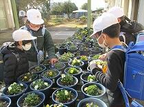 ※上の写真は、昼休みに花の手入れをする1年生です!
