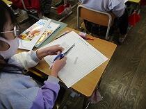 今日の給食の時間の作文発表は、1年生のこの前とは違う学級でした。