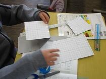 テープで、はこの形を作る時に、いろいろ試行錯誤していました。でも、その活動が4年生の見取り図や展開図を描くときに役立つだろうなと思いました。