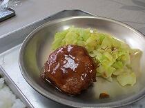 「てりやきハンバーグ」は、甘めで子どもが喜びそうな味付けでした。お皿に一緒に入っている「そえやさい」は、茹たキャベツそのままではなく、鰹節がまぶしてあり、薄味が付けてありました。これだけでもご飯がすすみそうでした。