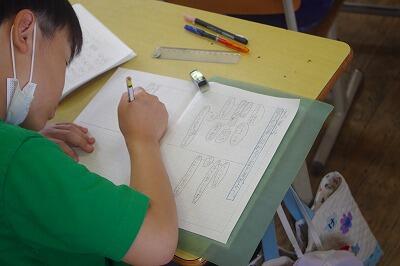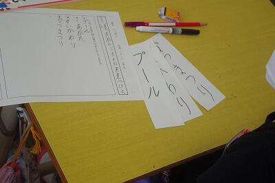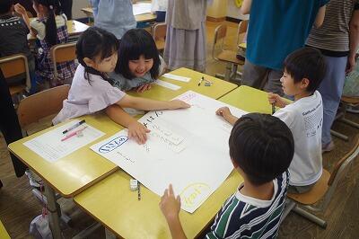 4の2も「夏の楽しみ」という同じ様な単元でしたが、「マッピング」で言葉と言葉をつなげることで、関連することばのまとまりを感じさせるようにするところが、4年生のレベルの授業でした。
