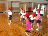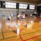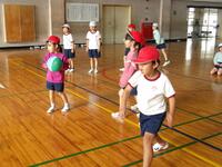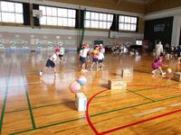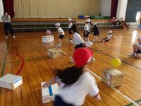歓声が聞こえてきたので覗きに行くと、体育館で1年生がボールあてゲーム?に夢中でした。真ん中の段ボールを両サイドからボールで狙って相手側に追いやるゲームです。拾っては投げ、制限時間いっぱい動いていました。スポーツテストでも投げる動作は学校の課題です。楽しみながら体力付けてほしいですね。