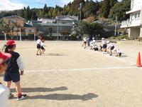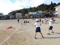 3年生は、外でティーボールとフットベースボールでした。打ったら走る、とったら集まる、その間にどこまで進むかで得点になります。思い切りかっ飛ばして、一生懸命走っていました。今、インフルエンザが流行しています。岡富っ子の元気で吹き飛ばしてほしいです!