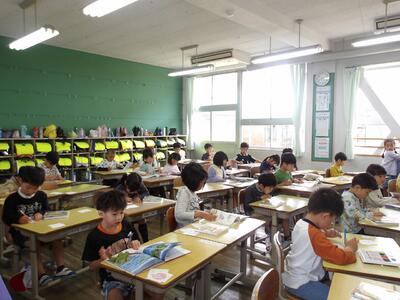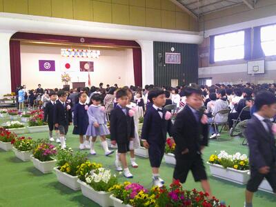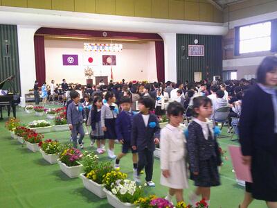 入学して今日で4日目。朝はつらつと元気に登校しています。保護者が見送ったり、少し涙ぐむもいたりと様々ですが、毎年恒例の様子です。大海原に旅立ち、一歩一歩進んでたくましくなる課程です。教室を通ると手を振ったり、笑顔で挨拶してくれたりするかわいい89名。がんばれ!