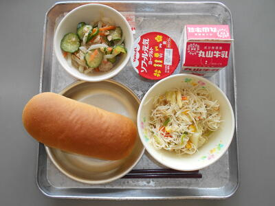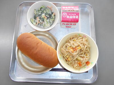 3月19日(火)、献立名(のべおかめんまのラーメン・やさいのマヨネーズあえ)今日は、延岡めんまの入ったラーメンです。延岡メンマは、「孟宗竹」という種類のタケノコから作られています。延岡メンマは、放置された竹林を何とかしようという目的で、江原さんという方が開発された食品です。そのままにしていたら捨てられてしまう食材を、何とか工夫して食べられるよう加工して延岡の特産物にするということは素晴らしいことですね。竹の子は食物繊維が多くおなかの調子を整える働きがあります。延岡メンマ、味わって食べてくださいね。