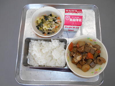 3月13日(水)、献立名(ちくぜんに・ちりめんあえ)今日は、ちりめんについてのお話です。かたくちいわしの子どもを「しらす」といいます。しらすを釜でゆで、乾燥させたものが「しらすぼし」で、このしらすぼしをさらに乾燥させたものを「ちりめんじゃこ」とよびます。ちりめんじゃこには、骨や歯を強くするカルシウムがたくさん含まれています。