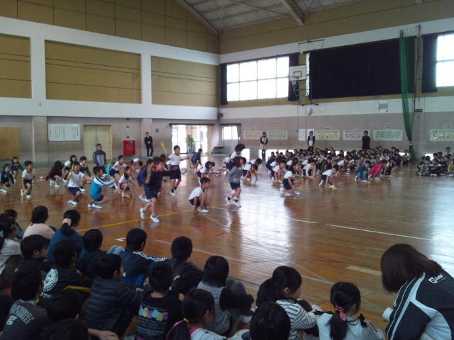この日は、風がとても強く寒い一日にでした。でも、全校児童たちは、寒さに負けず春に向かって頑張っています。