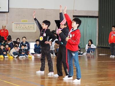 2月9日(木)の朝に、1年生の発表集会を行いました。 くどうなおこさんの詩「ぽいぽいたいそう(こいぬけんきち)」を全員で群読し、その後 「ドレミのキャンディ」を歌いました。「寒さを吹き飛ばすくらい元気に発表しよう」と声をかけると、子ども達は、体を動かしながら、元気いっぱい発表しました。 |