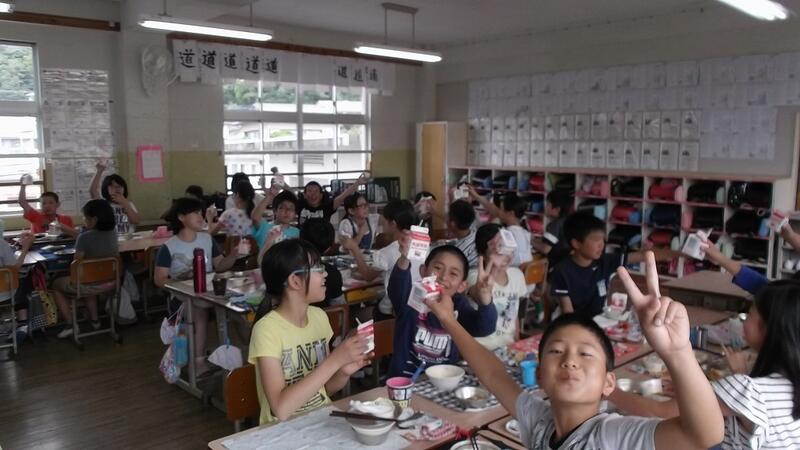 また、達成した日には、給食時間の放送でお知らせし、乾杯をして祝っています。