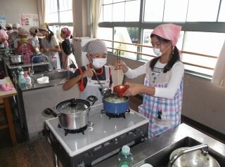 ご飯とみそ汁は、日本の伝統的な食事形態(和食)の主食と汁物になります。子どもたちにも調理実習を通じて和食の良さを感じてもらいたいですね。ぜひ、ご家庭でも子どもたちと一緒に料理を作る機会やお手伝いを積極的に体験させていただけたらと思います。