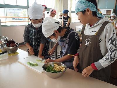 先日、5年生が家庭科「はじめてみよう クッキング」の学習で、ゆで野菜サラダを作りました。ブロッコリー、ニンジン、キャベツをゆで、手作りドレッシングでおいしく頂きました。2回目の調理実習ということで、スムーズに実習を進めることができました。