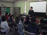 3月15日(金)の3校時、朝日新聞社延岡支局長の吉田さんに来校していただき、ご自身のお仕事についてお話していただきました。この学習は、延岡市教育委員会が実施している「ふるさと教育推進事業 子どもたちに伝えたいこと」の一環で行いました。吉田さんからは、世間にあふれる情報が正しいかどうかを考えることや好奇心をもつことの大切さ、仕事の楽しさについて分かりやすくお話していただきました。