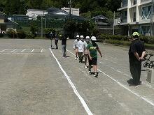 14日(火)快晴のもと、延陵自動車学校の方に来ていただき交通安全教室がありました。横断歩道の渡り方、歩道の歩き方、自転車の乗り方、自転車の点検の仕方などを丁寧に教えていただきました。