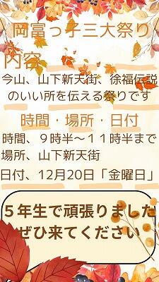 普段、サッカーで鍛えた気力体力での見事な成績です。先日のひょっとこマラソン大会もそうですが、知らない世界に、自らチャレンジしてみようという気持ちが、とても素晴らしいですね。これからも岡富っ子のチャレンジを応援します!