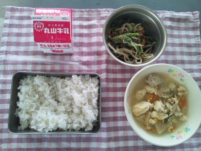 1月13日(水)献立:ごはん 牛乳 ごもくずし こうはくはんぺんすましじる