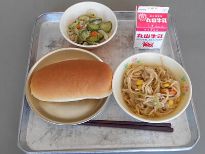 10月6日(金)、今日は、延岡めんまの入ったラーメンです。延岡メンマは、「孟宗竹」という種類のタケノコから作られています。皆さんは、山に出かけた時、竹がのびきってしまってこんもりとなった竹林を目にすることはありませんか?延岡メンマは、このように放置された竹林を何とかしようという目的で江原さんという方が開発された食品です。そのままにしていたら捨てられてしまう食材を、何とか工夫して食べられるよう加工して延岡の特産物にするということは素晴らしいことですね。竹の子は食物繊維が多くおなかの調子を整える働きがあります。延岡メンマ、味わって食べてくださいね。