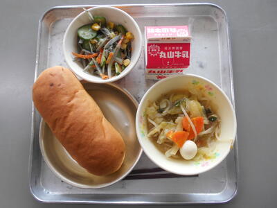10月20日(金)、今日は、レーズンについてのお話です。レーズンは、生のぶどうを乾燥させたものです。生のぶどうに比べると、ビタミンやミネラルが豊富で、皮ごと食べられるので食物せんいも多くなっています。今日は、パンに入っています。苦手という人もいるかもしれませんが、甘酸っぱくでおいしく味わえると思います。よくかんで食べてみてくださいね。