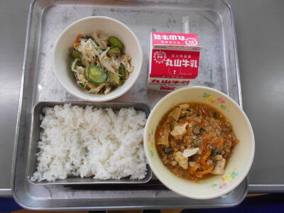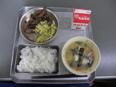 食生活をよくする合言葉、「まごはやさしい」をみなさんは知っていますか?みなさんにもっと食べてほしい、日本で昔から食べられてきた食品の頭の文字を並べたものです。「まめ、ごま、わかめ、野菜、魚、しいたけ、いも」です。これらの食品は、栄養的に優れているばかりでなく、かみごたえもある食品です。今日の給食には、まめ、ごま、野菜、しいたけが入っています。日本に昔から伝わる食事を大切にしていきたいですね。