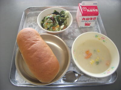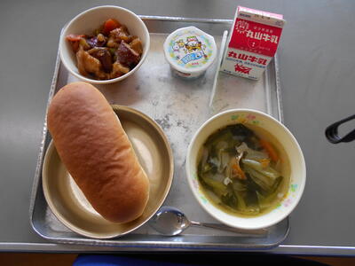 5月26日(金)、ヨーグルトは、牛や羊、やぎ、馬などのミルクを、乳酸菌を使って固まらせた発酵食品です。日本では、牛のミルクで作られたヨーグルトがほとんどです。ヨーグルトの歴史はとても長く、今から五千年前にはすでにヨーグルトは存在していたといわれています。発祥の地は、ヨーロッパ地方のブルガリアという国です。ヨーグルトはお腹の中の環境を整えて、みなさんの健康を守ってくれます。すすんで食べましょう。
