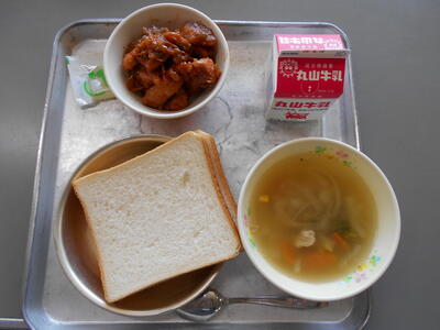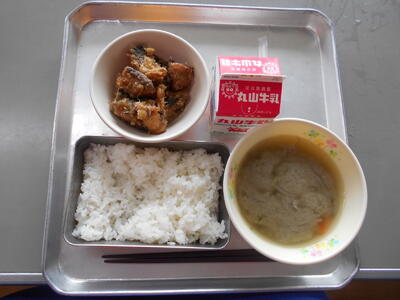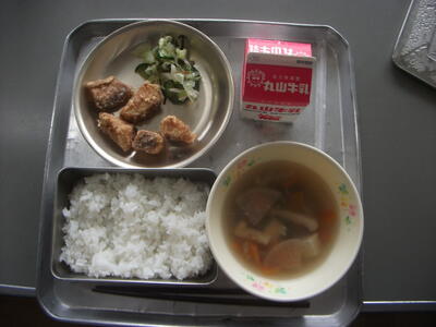 小学校は明日が卒業式。6年生にとって、小学校で食べる給食は、今日が最後になります。1年生から5年生の皆さんにとっても今の学級で食べる給食は、今日が最後になります。今日は、岡富小学校6年生からのリクエストメニューです。岡富小学校6年生に、人気ナンバー3は「たこ焼き風」ナンバー2は「カレーライス」そしてナンバー1が「鶏の唐揚げ」でした。汁物には、卒業をお祝いしたい気持ちを込めて、「祝い」の字のかまぼこを入れています。これまで給食では、できるだけ宮崎県産の肉や魚、野菜をとりれてきました。私たちのふるさと延岡では、美味しい肉や魚、野菜がたくさんとれることが、給食を通して伝えることができたかなあと思います。岡富小学校6年生のみなさん、リクエストありがとうございました。