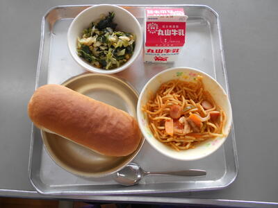 4月14日(金)、今日は、やきそばについてのお話です。焼きそばは、中国料理の点心の一つで、中華めんを炒めた料理のことです。肉やイカ、野菜などたくさんの具が入っていて、栄養のバランスがとれています。点心は、もともとはお坊さんが食べる ようかんやうどん、おまんじゅうなど おやつの事でした。給食のやきそばは、豚肉、イカ、ちくわなど体を作るもとになるものと、キャベツ、にんじん、たまねぎ、もやし、ねぎなどの体の調子を整える野菜もたくさん入っています。