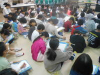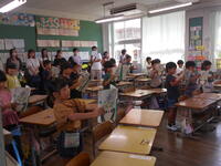 4年生は、妙田下水処理場を見学の後、しろやま支援学校で交流会を行いました。下水処理場は、普段、自分たちの生活にに大きな関わりがあるのに、どんな仕組みで下水がきれいになるのかは、わかっていない部分が多いです。大変、いい勉強になりました。また、しろやま支援学校では、運動会で演じたエイサーを披露するなどしました。みなさんから喜んでもらえて、いい交流の場となりました。