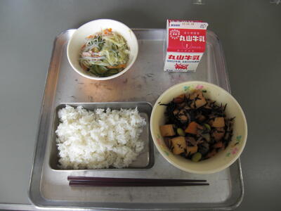 今日は、いそ煮です。いそ煮とは、ひじきなど海のものと一緒に煮込んだ料理のことを言います。ひじきは、カルシウム・鉄・カリウム・ヨウ素などのミネラルが多く、食物せんいもたくさん含まれています。ひじきにふくまれる鉄分は野菜といっしょに食べると、ビタミンCが吸収を助けてくれるので貧血の予防になります。