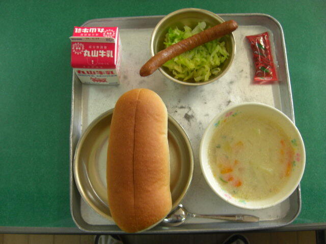 2月20日(金) 献立:セルフホットドッグ (ウインナー、キャベツ、ケチャップ)