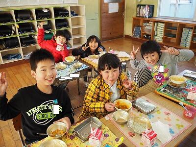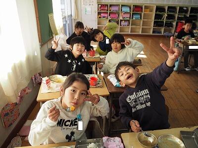ラッキー人参は、給食室の先生方からのお年玉プレゼントでした。たくさんの愛情が詰まった給食は今日もとってもおいしく、どのクラスも子どもたちのうれしそうな笑顔であふれていました。