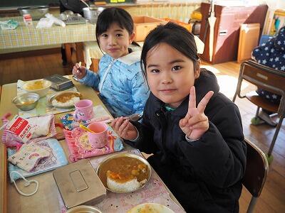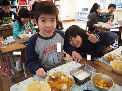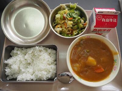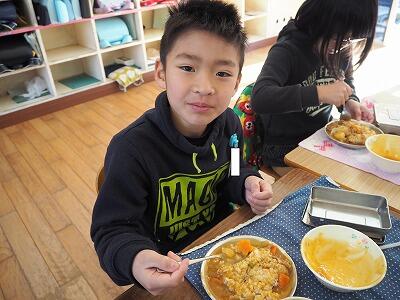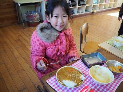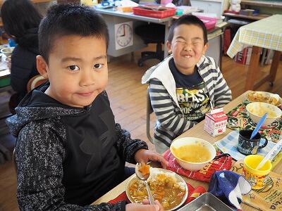 給食室からカレーのいいにおいがしてきたので、子どもたちも給食時間が楽しみだったようです。