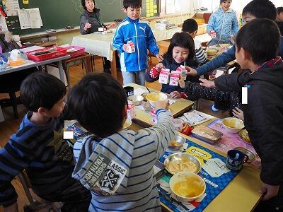 2年1組では、お誕生日を迎えたお友達のお祝いをしていました。お誕生日の歌と牛乳乾杯をしてみんなで楽しい給食時間を過ごしていました。