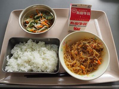 今日は、ごま油の風味が食欲をそそるマーボー春雨です。甘辛い肉味噌が春雨と絡んでごはんとの相性も良く、今日もほとんど残菜はありませんでした。