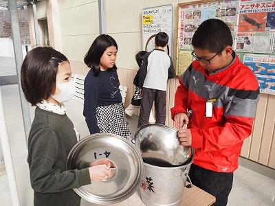今日もみんなで協力して給食の片付けを行っています。ごはん屋さんが来ると率先してお手伝いに向かう子どもたちの姿はとても頼もしいですね。後から食器を持ってくる1、2年生がいれば「こっちだよ!」と優しく教えてあげたり、「他に何か手伝うことはありませんか?」と声をかけてくれる子どもたちも多く、毎日感心しています。
