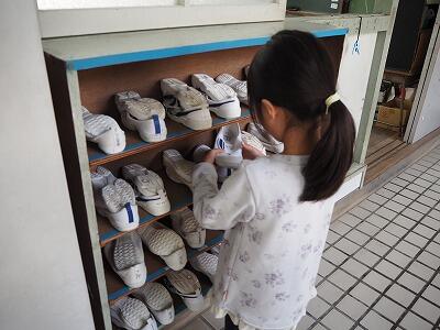 1年生トイレ前を歩いていた4年生の女の子がトイレのスリッパを一つ一つきれいに並べていました。