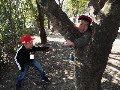 その後もお友達と仲良く楽しそうに木の実を集めていました。
