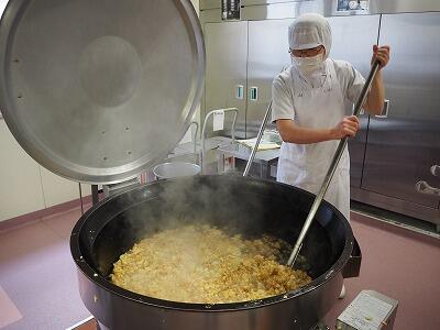 揚げパンは、パン屋さんで作られていると思われている方も多いですが、給食室で作っています。