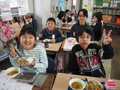 今年最初の給食もみんな好き嫌いせずモリモリ食べていました。