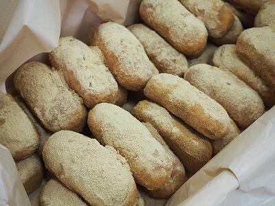 こんがりと揚げたパンに、きな粉、塩、砂糖の入った粉をまぶしていきます。