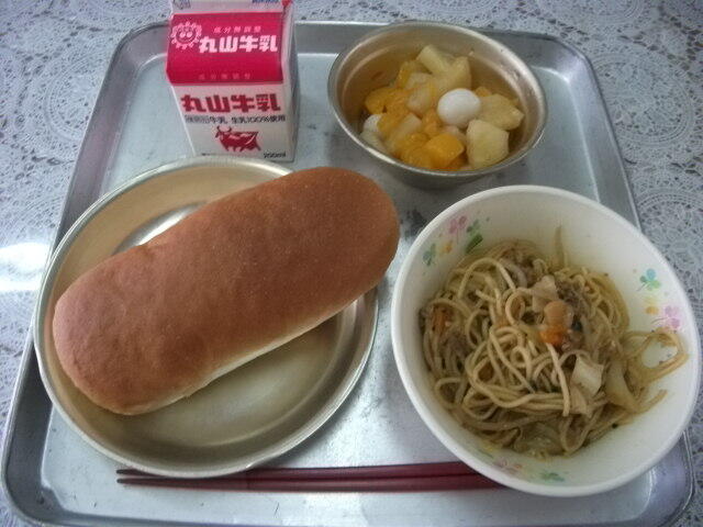 5月12日(火)献立:プチコッペパン 牛乳 やきそば フルーツしらたま