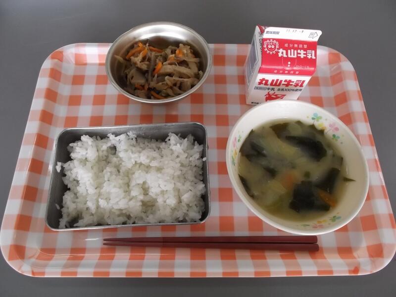 11月26日(木)献立:ごはん 牛乳 せんぎりだいこんのにもの はくさいのみそしる