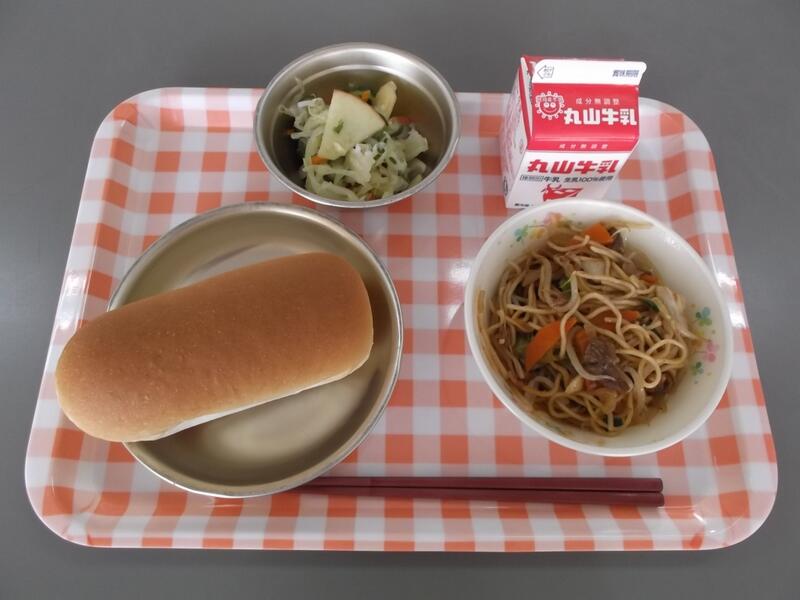 11月27日(金)献立:げんりょうコッペパン 牛乳 りんごサラダ やきそば