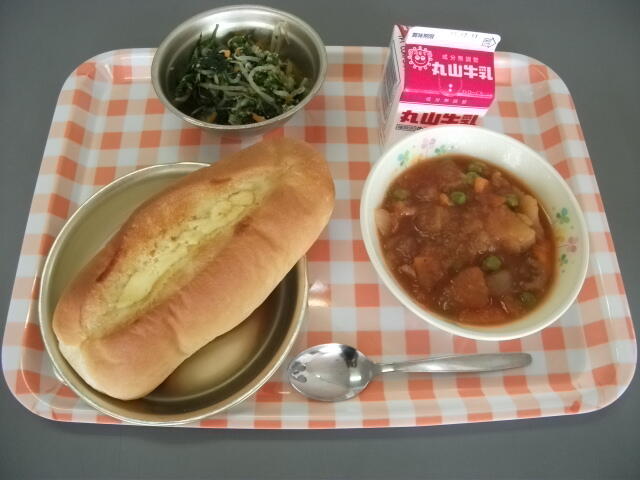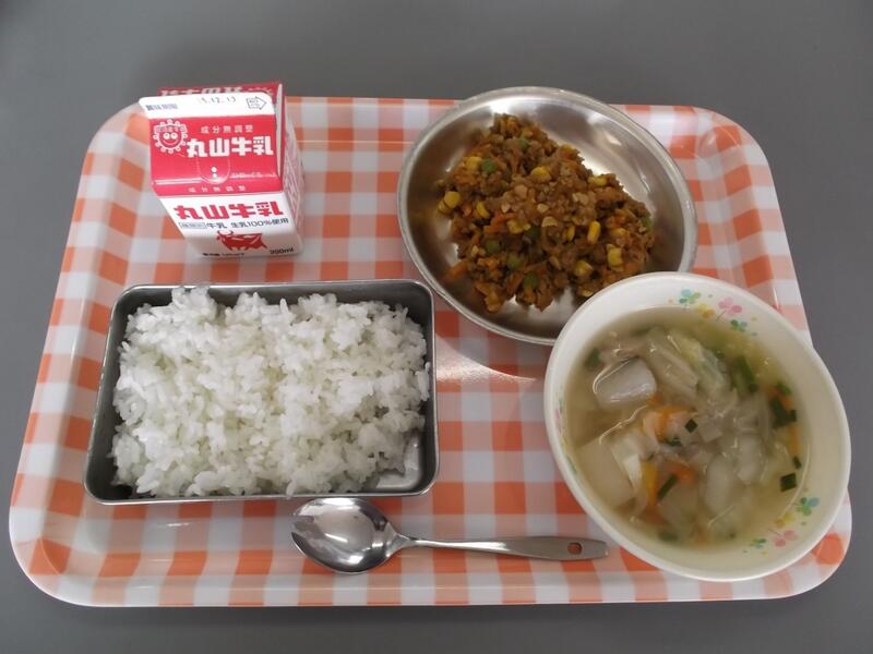 12月7日(月)献立:ごはん 牛乳 ドライカレー かぶとはくさいのスープ