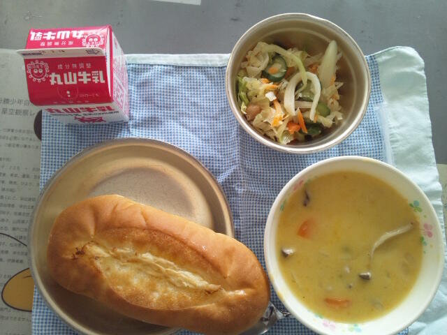12月8日(火)献立:コッペパン 牛乳 フレンチサラダ クリームシチュー